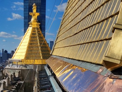 We provided permitting, bid administration, and construction period services related to repairs to the gold tile roof and copper cornice at the building's main roof.