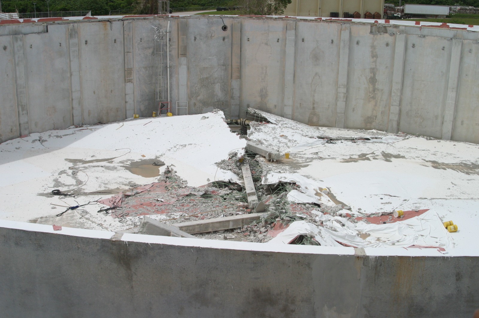July 12, 2007, the roof of the water tank supposedly collapsed. During that time, the reservoir was being filled for the second time after the completion of construction. WJE was retained to determine the reason for the roof collapse and also if the tank could be salvaged for future use.
