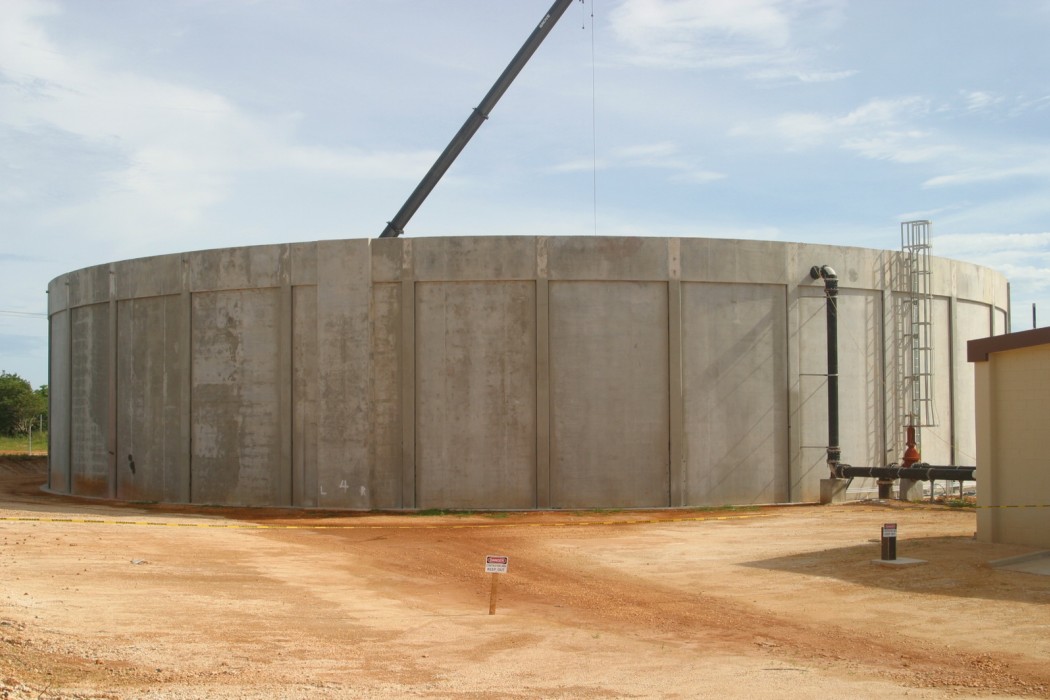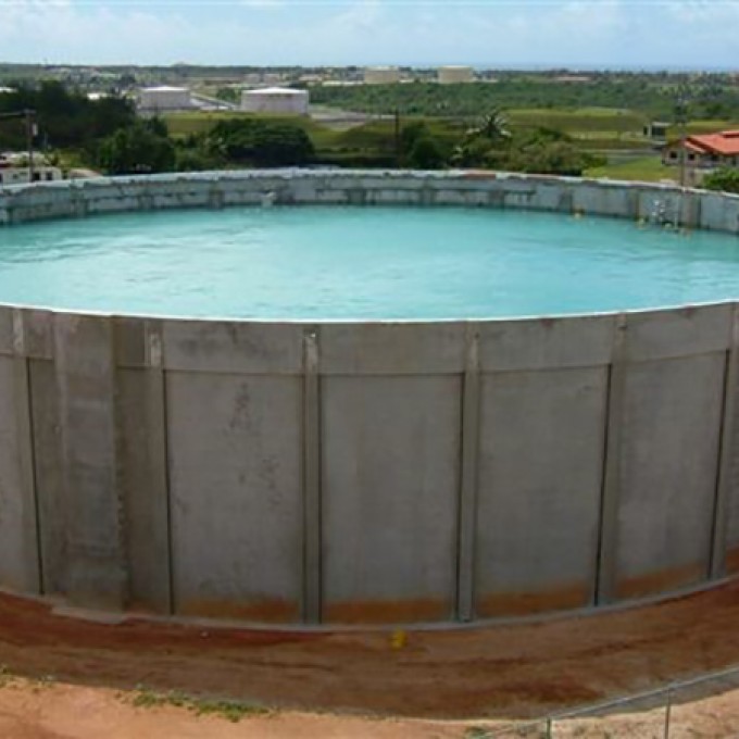 The Andersen Air Force Base water reservoir was designed to replace the off-base water supply for the base. The cylindrical tank was designed to hold 12,320 kiloliters of water. The steel-reinforced concrete reservoir was completed in January of 2007. The roof of the concrete reservoir was cast in place while the walls were made up of twenty-eight precast and prestressed sections.