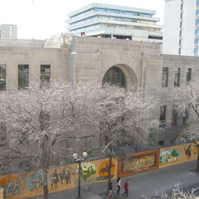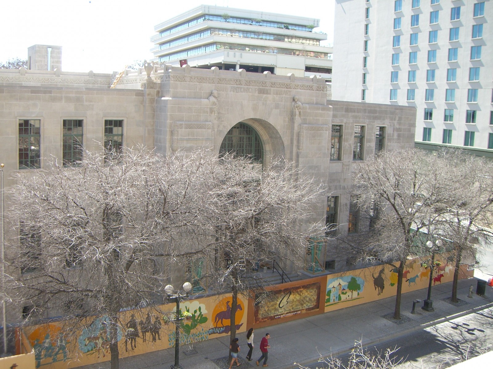 The Briscoe Western Art Museum is a restoration of the original Hertzberg Circus Building. The limestone clad Art Deco/Beaux Arts structure, designed by Herbert S. Green, was constructed in 1929 and opened in 1930 as the San Antonio Public Library.