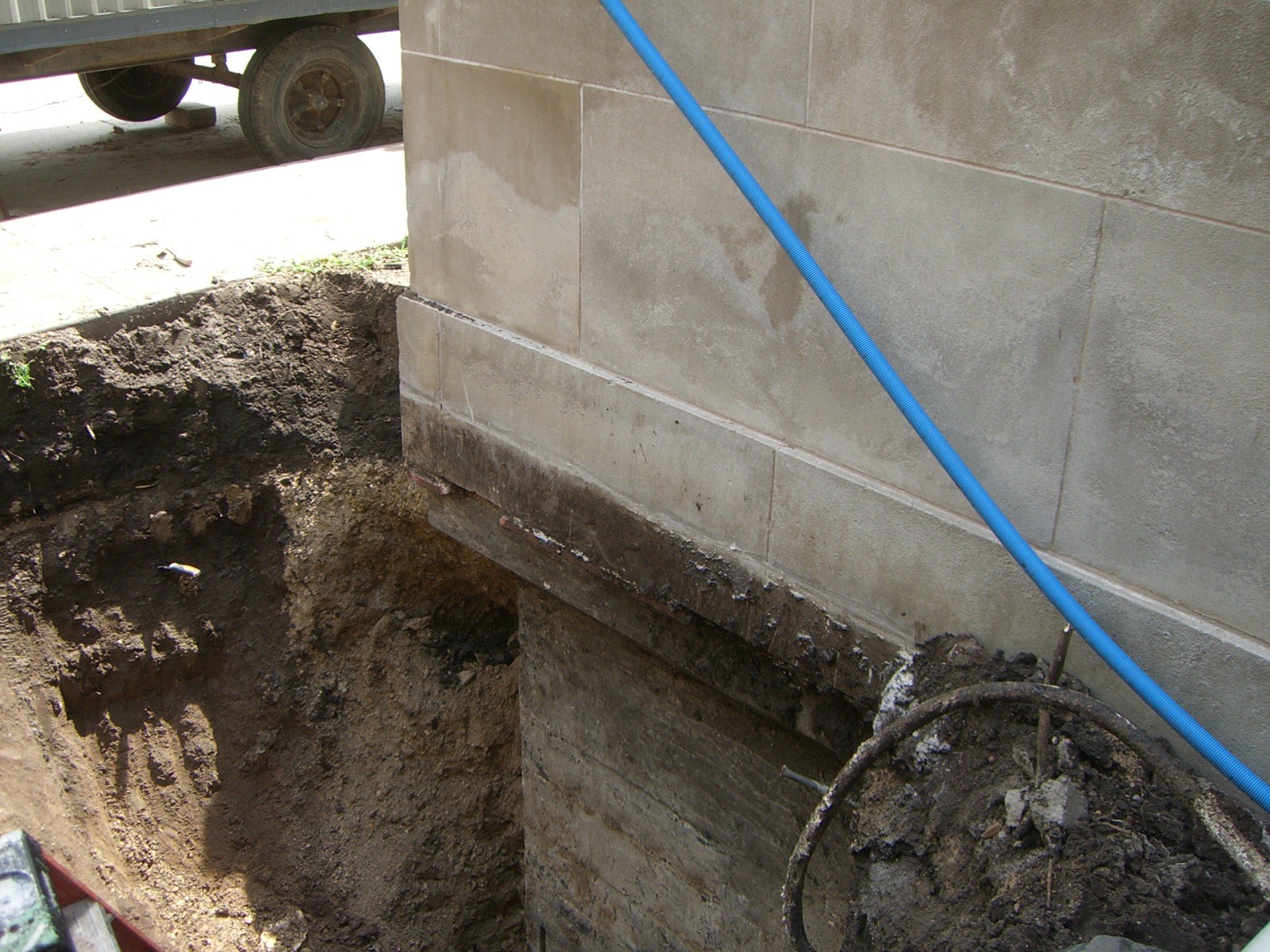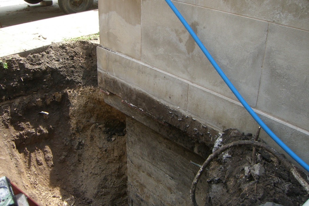 WJE reviewed relevant documents, including geotechnical reports and interim design drawings. WJE then performed a field assessment, which included an elevation survey around the perimeter of the building, and documented below-grade conditions of the building exterior at exploratory test pits.