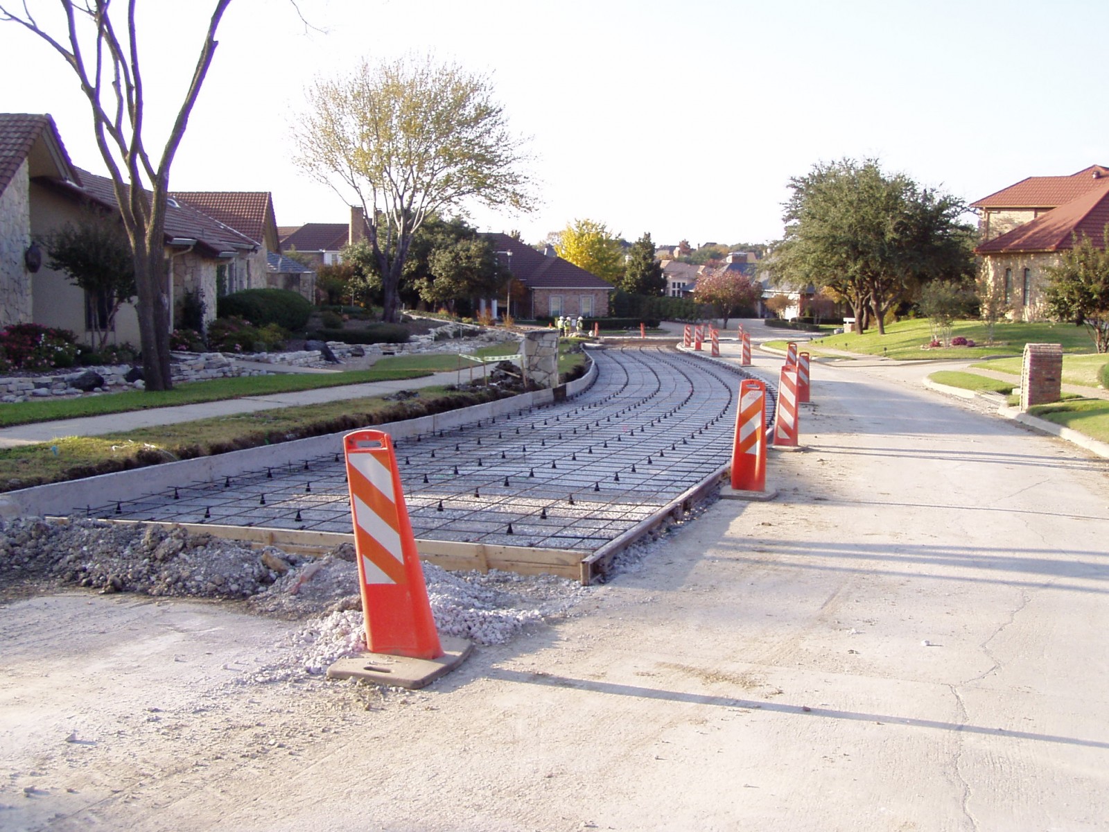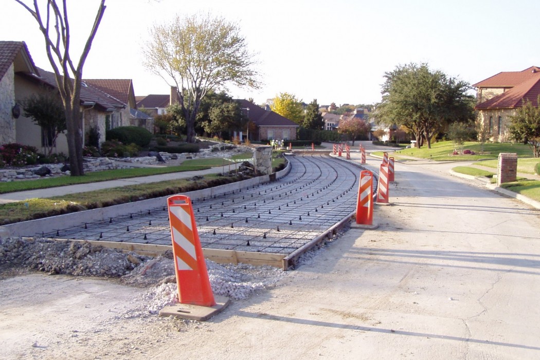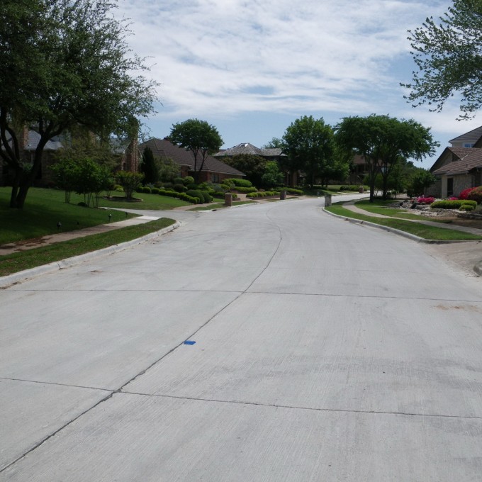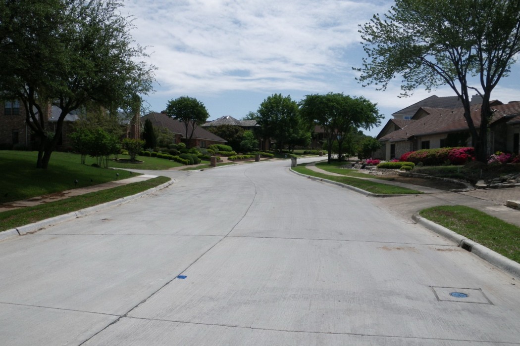 To address the Association's needs, WJE first conducted a detailed assessment of all pavements in the development. This included quantifying pavement distress and condition on a panel-by-panel basis; the assignment of a pavement condition index (PCI) to each section; pavement, base, and subgrade sampling and laboratory characterization; and the development of various maintenance, repair, and reconstruction strategies to span a twenty-year interval. WJE has continued to provide pavement consulting services for several years by developing plans and specifications for four pavement repair programs and the reconstruction of 1.2 lane miles of deteriorated pavement. The $1.4 million reconstruction project included significant coordination with both the City of Irving and the Association because the project scope was expanded during design development to include utility replacement on behalf of the City of Irving, who owned and was responsible for below grade water and sanitary sewer lines. The final schedule was critical in order to assure City funding within the scheduled fiscal year and the Association's available funding. The project was bid with the successful contractor coming in under the program budget and the overall project, including design fees, was completed within budget.