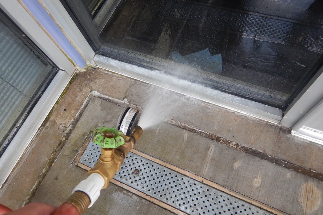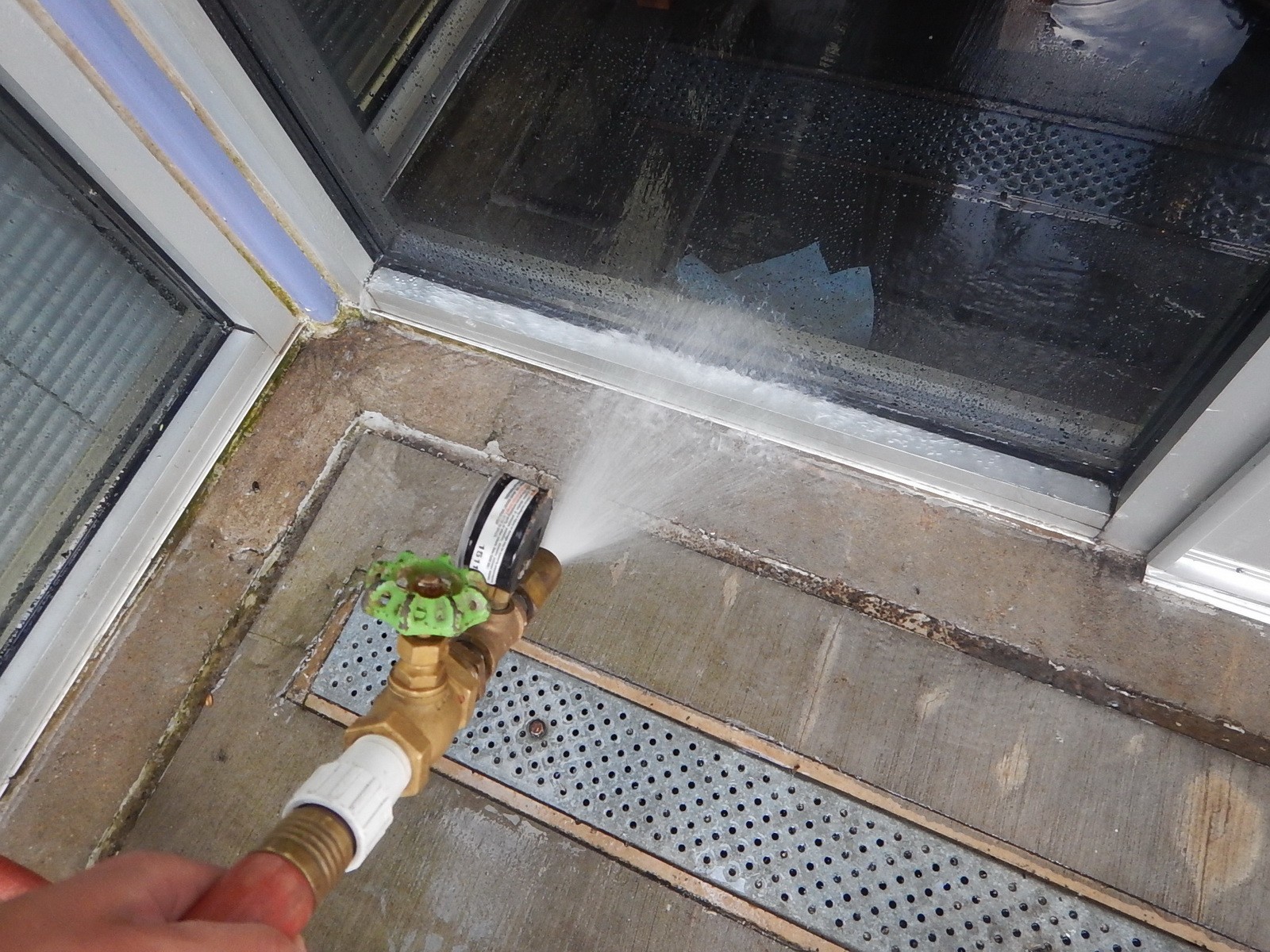 To identify the sources of water infiltration, WJE first conducted a visual survey of the interior and exterior of the Travel Center to find evidence of water infiltration and to identify conditions that could be contributing to the ongoing water infiltration. WJE then employed a regimen of spray testing to identify and confirm the sources of water infiltration. Once water infiltration was confirmed through spray testing, investigative openings were made on the interior and exterior to determine the deficiency that was allowing water to bypass the building envelope systems.