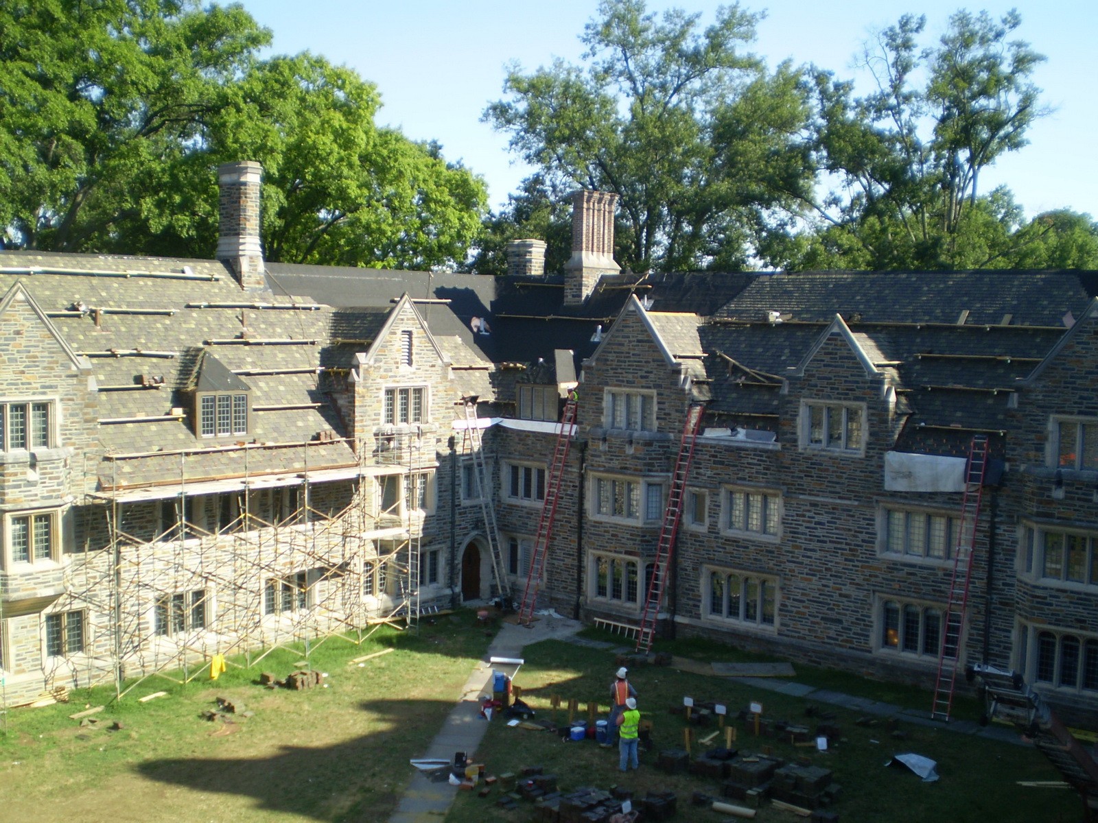 A majority of the 70-year-old building stock of Duke University's West Campus is roofed in clay tile. The roofing system of Few Quad residential hall was scheduled for replacement in conjunction with an interior renovation project while students were displaced from this 56,000-square-foot housing block. WJE was retained to design a new roofing system integrating a similar 75-year lifespan while blending into the remaining building stock. Duke University considered the work at Few Quad to be the first step in a comprehensive building program.