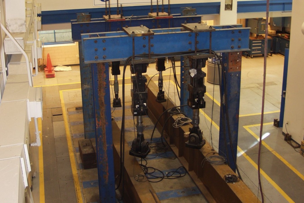 WJE developed the test plan prepared by the New York Department of Transportation (NYSDOT), which called for monitoring of strain, load, deflection, and rotation. Five deteriorated, prestressed concrete box beams from a bridge in New York State were removed to achieve these objectives and were transported to the FHWA facilities for testing under controlled load conditions. WJE tested a severely deteriorated beam to initial cracking and to ultimate failure. Several severely deteriorated beams repaired with composite laminates were tested to initial cracking and ultimate failure. Based on this testing, WJE developed recommendations for surface preparation and application of FRP to strengthen deteriorated box beams.