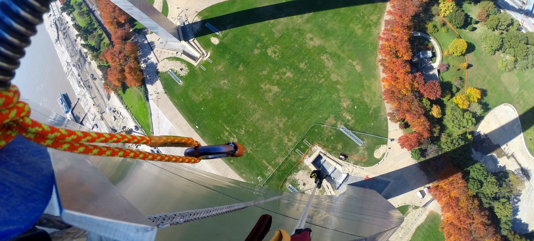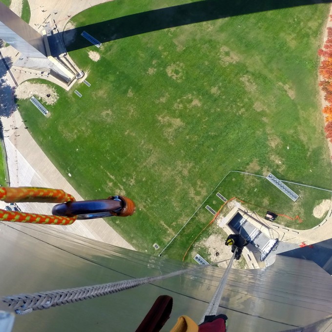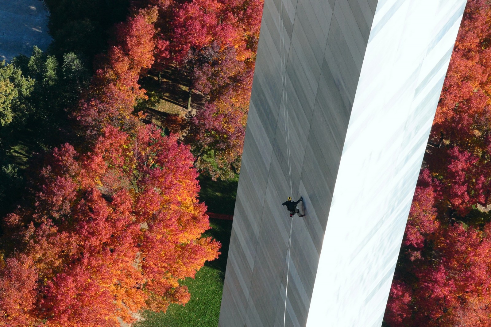 During the final phase, areas of stainless steel that appeared discolored from grade were examined close-up for the first time using industrial rope access techniques. WJE architects, access experts, conservators, and engineers worked collaboratively to document and investigate the causes of the discoloration of the stainless steel skin and to conduct cleaning trials to mitigate their appearance. The work of all team members, including the National Park Service, was critical to identify, assess, and develop treatment recommendations for the long-term preservation of the Arch. WJE's expertise in materials conservation, engineering, and extensive experience in preservation techniques contributed to meet the client's goal to develop a long-term preservation plan.