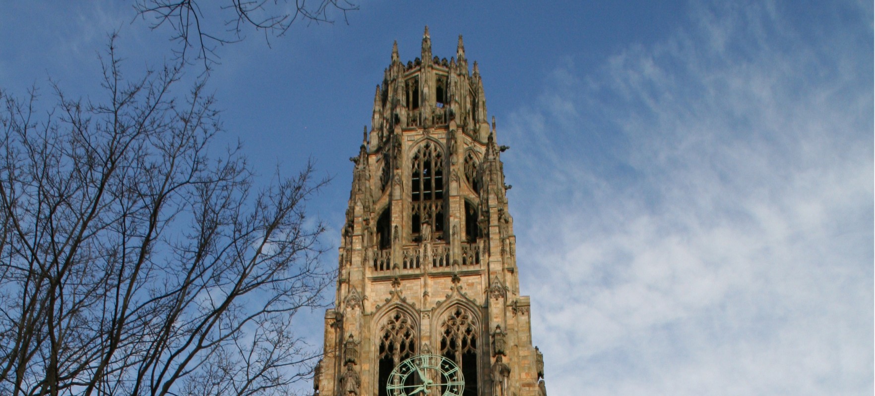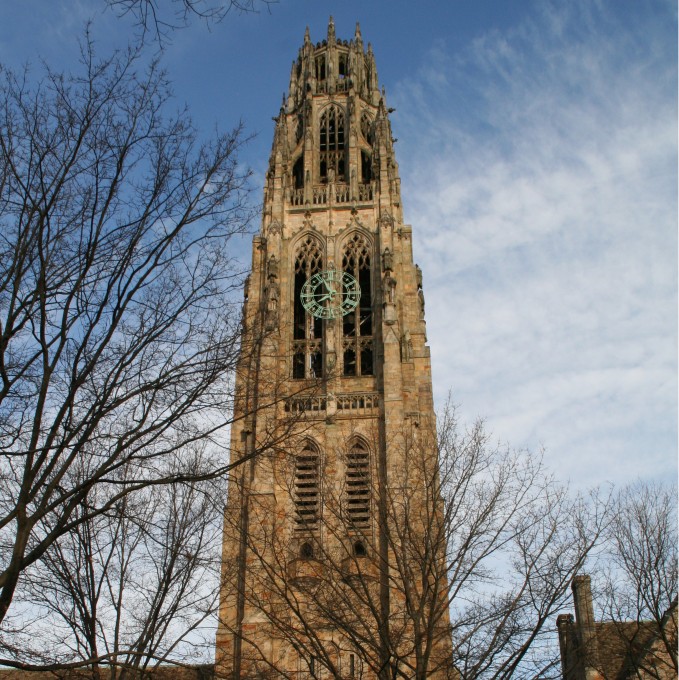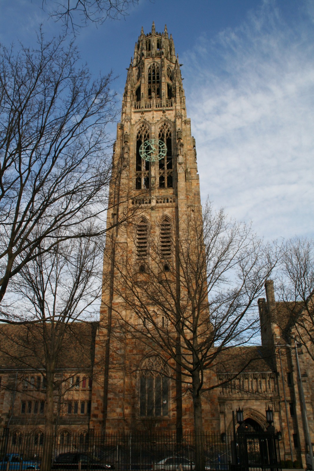 Harkness Tower is a focal point on the campus of Yale University. Constructed from 1917 to 1921, James Gamble Rodgers based his design for this collegiate gothic structure on the fifteenth-century St. Botolph's Church in Boston, England. The tower rises 216 feet and is decorated with statues depicting famous Yale alumni as well as philosophers, allegorical figures, warriors, athletes, students, socialites, and poets. Its unreinforced masonry-bearing walls are faced with New England granite and Ohio brownstone backed by multiple withes of brick.