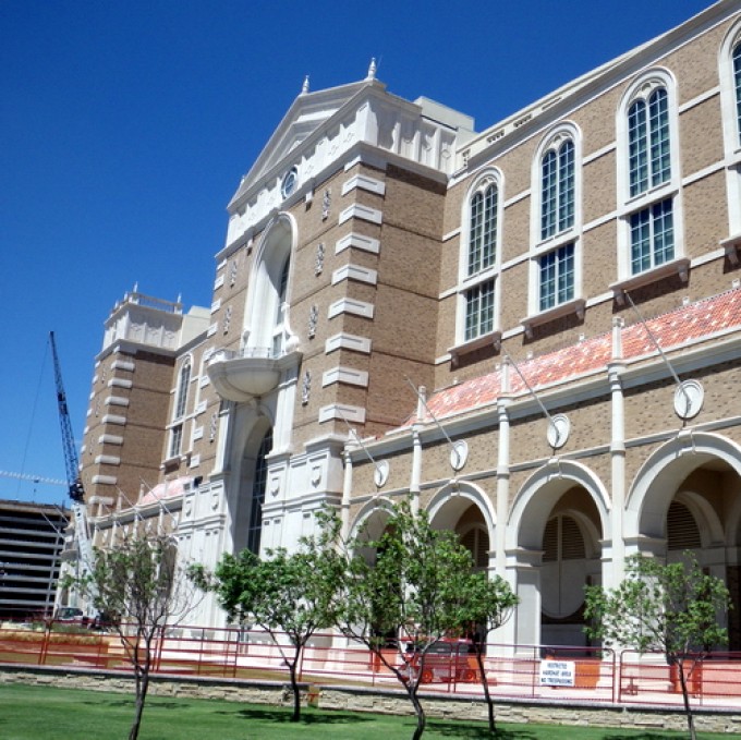 The Jones AT&T Stadium, home to the Texas Tech Red Raiders, is capable of accommodating over 60,000 fans. Since its original construction in 1947, the football stadium has undergone multiple expansions—notably a 175,000-square-foot addition to its west wing in 2004. The $51.9 million project included the construction of a new clay brick masonry facade to complement the Spanish Renaissance architecture of the surrounding campus.