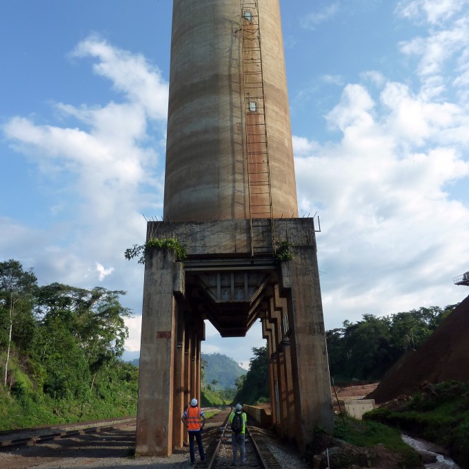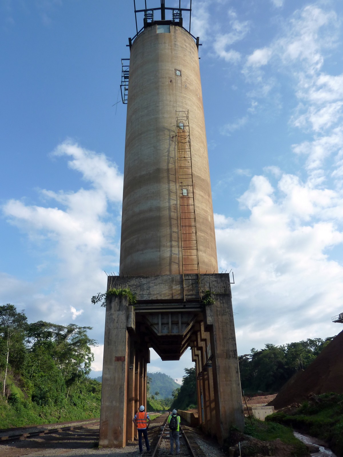 Two concrete silos that transferred iron ore material mined from the legendary Mimba mines in Liberia survived a ten-year civil war. One silo, located in the Atlantic coast at the Buchannan Port, is a one-bin structure 42 feet in diameter and 100 feet tall. The Tokedah silo is a two-bin structure with its supporting structure straddling railroad tracks; the bins are 30 feet in diameter and 120 feet tall. The structures were built in 1962. The Port silo is being considered for restoration and reuse as originally intended. For the foreseeable future, the Tokadeh silo will continue storing iron ore.
