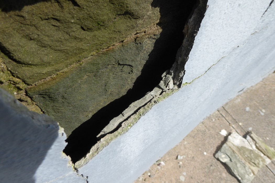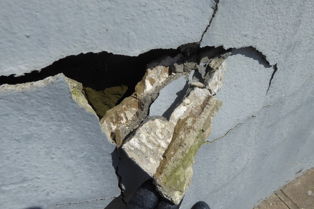 The Association was concerned with the condition of the structure’s exterior stucco, which was observed to be significantly cracking and delaminating from the sandstone and brick substrate. While a historically appropriate finish, the stucco is not original to the lighthouse.