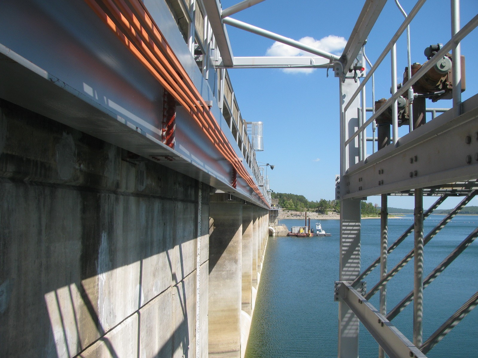 The construction of the Norfork Dam on the North Fork River in the 1940s created Norfork Lake in northern Arkansas. The dam, which is operated by the U.S. Army Corps of Engineers, utilizes twelve spillways to control the flow of water into the North Fork. In 2009, a large steel bulkhead, which controls water flow through the spillway during periods of maintenance, was designed. The 140,000-pound moveable bulkhead was designed to be mounted to existing pier caps in the spillways utilizing high-capacity, deep-embedment post-installed concrete anchors.