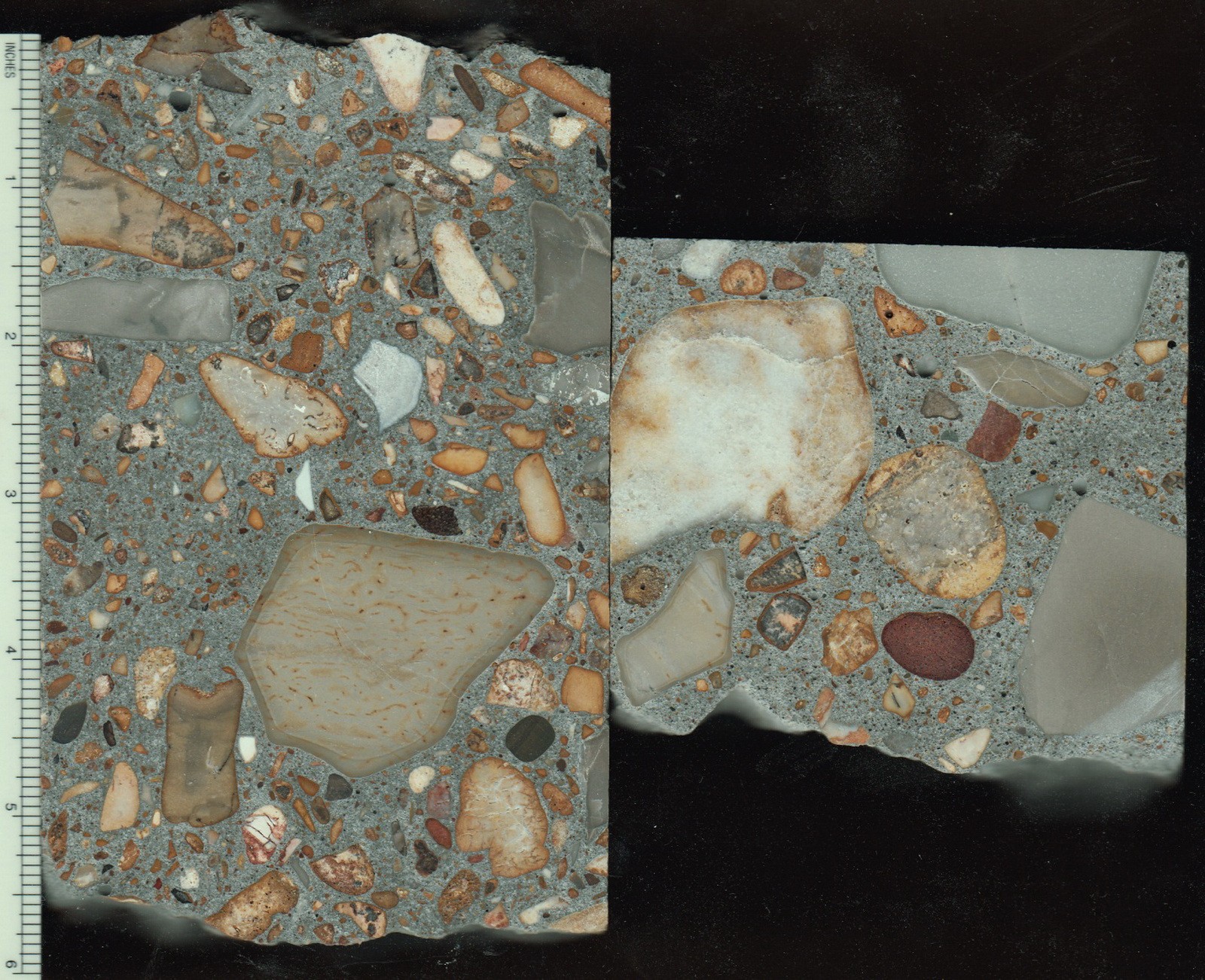 WJE supplemented compressive strength testing of the original 1940s-era concrete with petrographic analysis by WJE materials scientists. WJE discovered unique characteristics of the concrete composition that allowed for a more accurate interpretation of