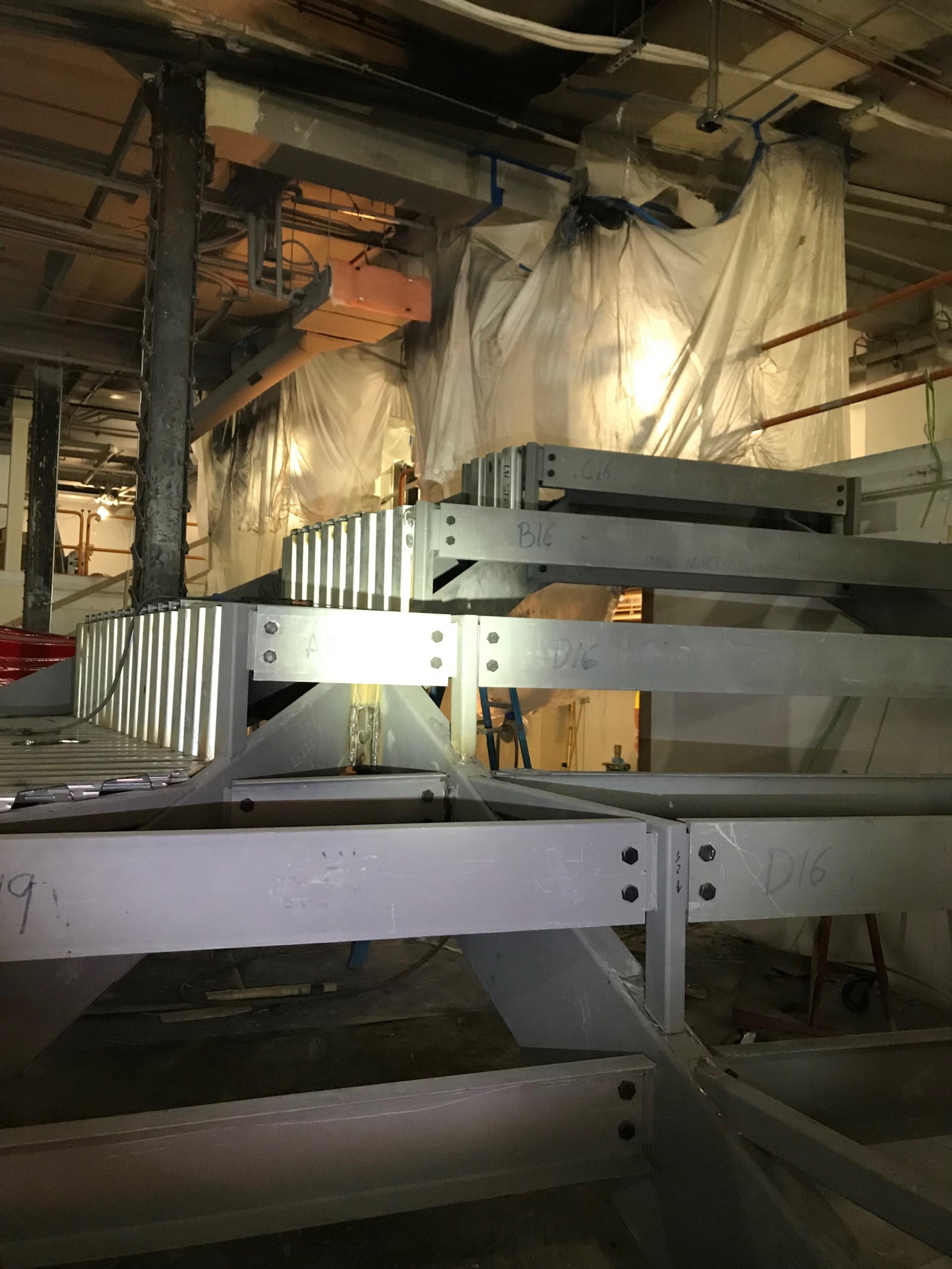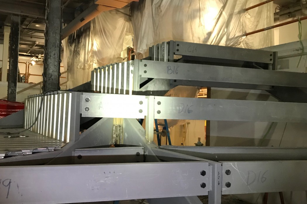 As part of the mechanical system upgrades, WJE worked with the mechanical engineer of record to coordinate the locations of new equipment and new slab openings. Additionally, the existing mechanical dunnage frame was reinforced to accommodate new mechanical equipment.