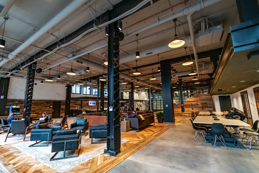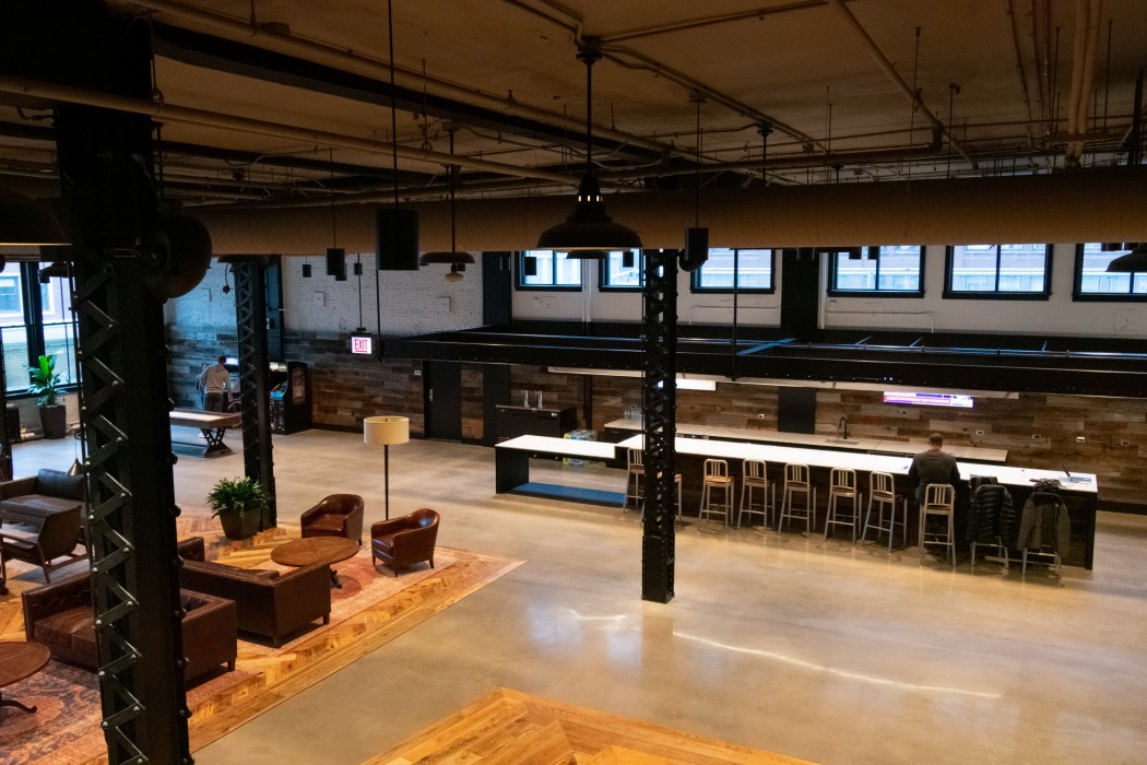 Shorenstein removed the eleventh floor and mezzanine to add an amenity space to the building. The amenity space included a fitness center with a variety of equipment, a featured bleacher stair, a limited-use/limited-access lift, a connecting stair, and significant upgrades to the mechanical system at this floor level.