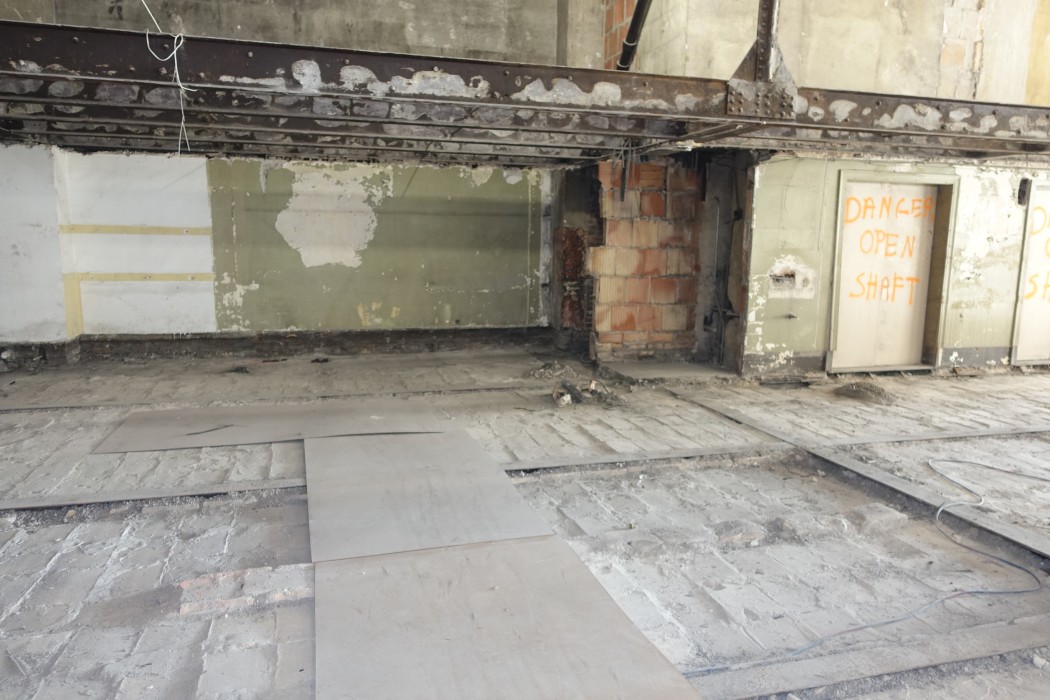 To accommodate additional head clearance at a portion of the eleventh floor, the existing clay tile arch floor system at the mezzanine was removed and replaced with a traditional lightweight concrete-topped metal deck system. At the eleventh floor, due to limited areas of distress, the existing wood floor and cinder fill was removed and replaced with a lightweight concrete topping system over the existing clay tile arch floor.