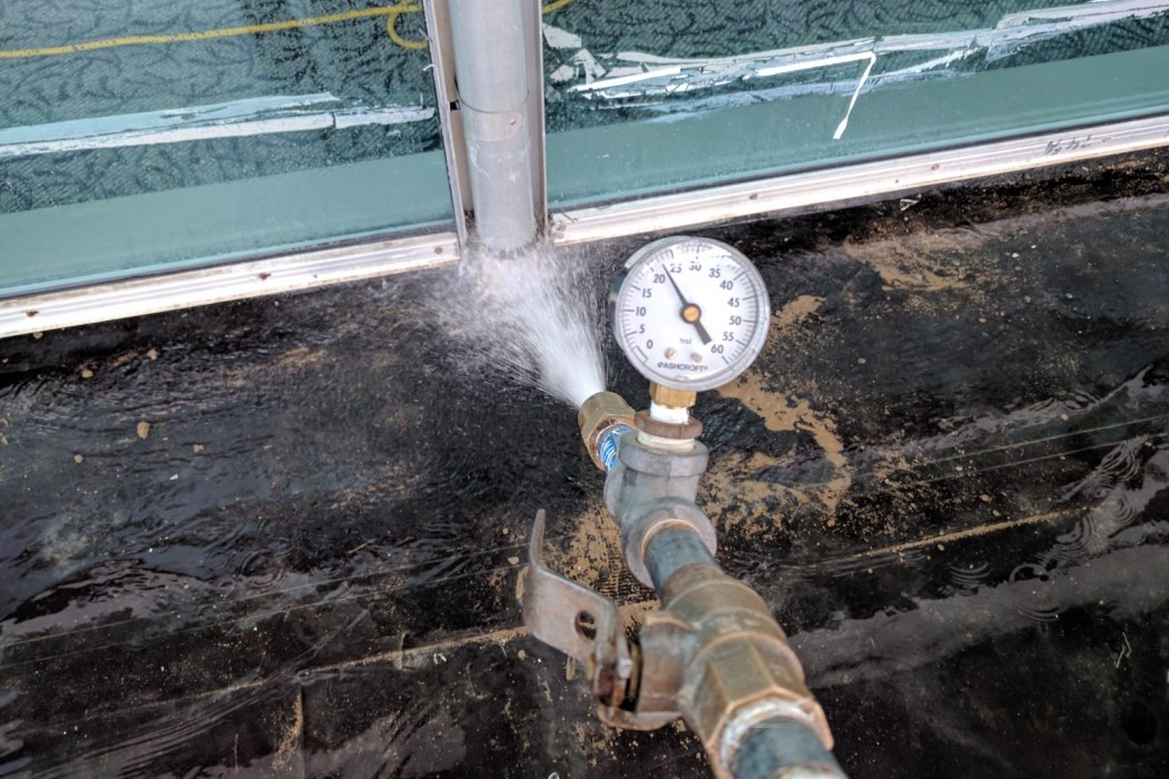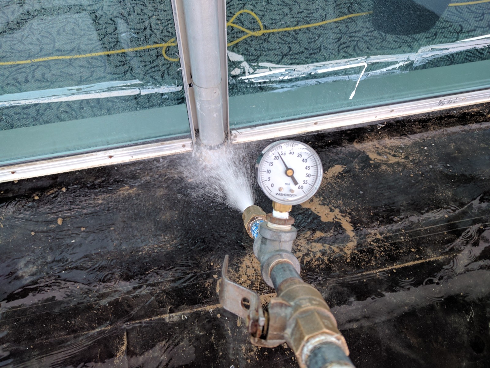 WJE visited the property to become acquainted with the nature and the extent of visible damage due to moisture at the property. WJE completed a limited review of available original construction document drawings, shop drawings, specifications, as-built construction documents, and subsequent repair documents and proposals related to the construction and the performance of the elevated deck. WJE then performed a close-range interior visual condition assessment to document interior conditions at the reported areas of moisture damage. WJE evaluated the installed waterproofing assembly within the field, at penetrations, and at perimeter returns by conducting flood testing. Utilizing a hand-held spray nozzle with a central valve and pressure gage, selected joints and assembly transitions were systematically sprayed to isolate the source of the water leakage. The interior of the test area was monitored for water leakage during the nozzle testing.