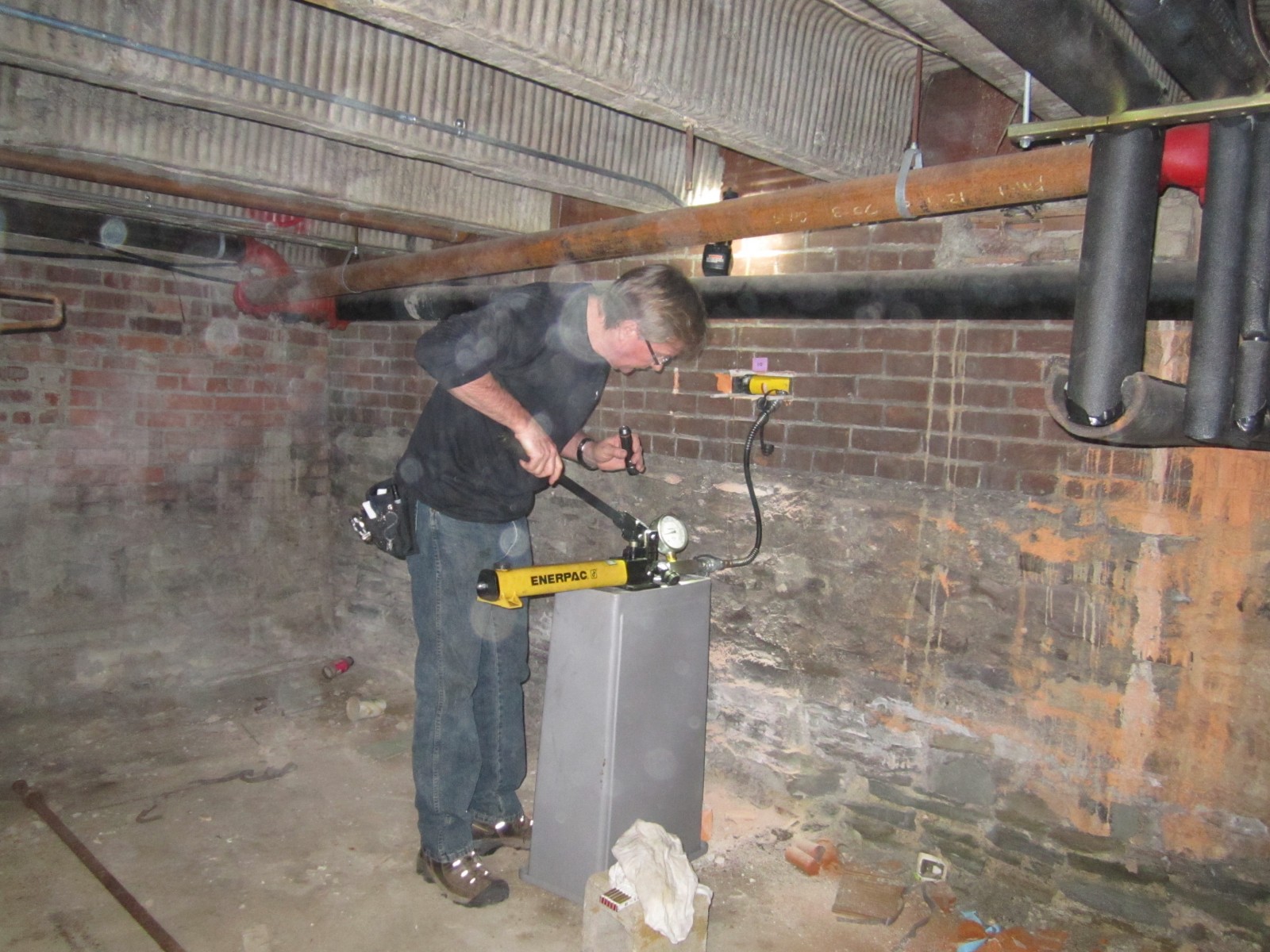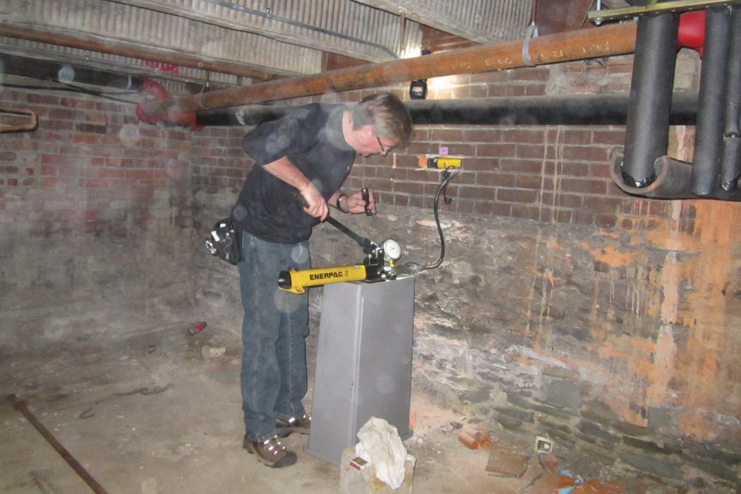 WJE worked with the project design team to develop and implement a masonry testing program. On-site testing was completed by WJE personnel in accordance with ASTM International standards. Equipment included a hydraulic ram, pump, and gauges as well as stainless steel flatjacks. Efforts also involved coordination with a local masonry contractor to prepare numerous locations for testing.