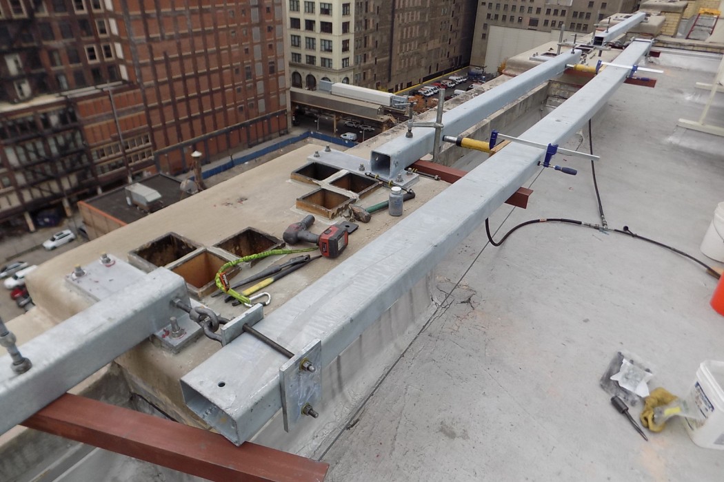 In 2016, the Occupational Safety and Health Administration (OSHA) issued a final rule updating the fall protection requirements of the General Industry Walking-Working Surfaces standard. The new regulations require building owners to provide certified anchorage points for workers using rope descent systems (RDS)—commonly referred to as boatswain’s chairs—for window washing. WJE designed new dedicated facade access equipment and certified the equipment by load testing to the minimum OSHA-specified design load.