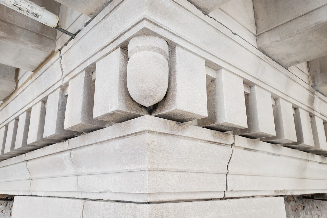WJE performed a comprehensive assessment of the exterior envelope conditions and developed appropriate repairs for weathering-related deterioration of the facade. In addition to preparing contract documents for facade restoration, WJE performed construction observation throughout the construction period, both on-site and at the off-site restoration shops of specialty subcontractors.