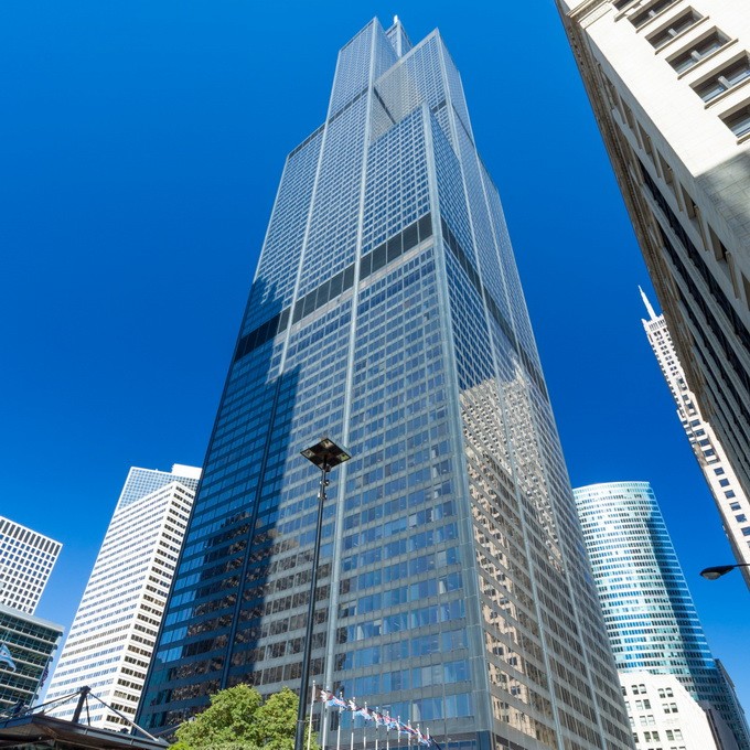 The Willis Tower is a 1,400-square-foot, 104-story high-rise building in downtown Chicago that was designed by Skidmore Owings and Merrill. Completed in 1972, it was the tallest building in the world for many years. Originally built for the Sears Roebuck Company and known as the “Sears Tower,” the building was later sold to private investors. Although largely a commercial office building, its ancillary functions include a retail concourse at the lower levels, parking at below-grade levels, and a public observation deck at the 103rd floor. The building remains the tallest structure in Chicago and is an iconic landmark in Chicago and throughout the world.